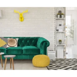 Grand Canapé 3 Places Chesterfield Velours Vert