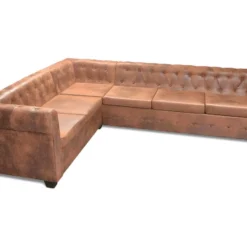 Canapé D’angle Chesterfield 6 Places Cuir Artificiel Marron