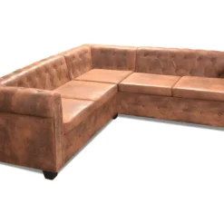 Canapé D’angle Chesterfield 5 Plcs Cuir Artificiel Marron