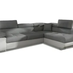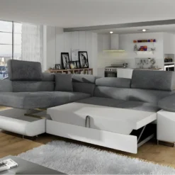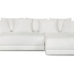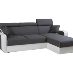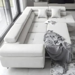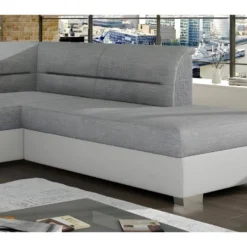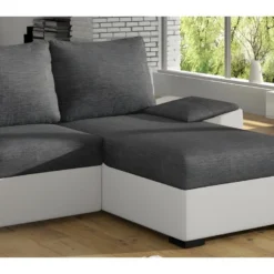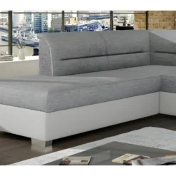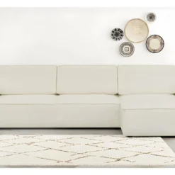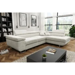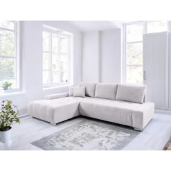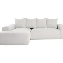 Canapé D’angle Droit 5 Places Convertible Avec Coffre De Rangement En Tissu Bouclettes écru – Giulia