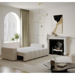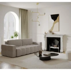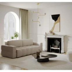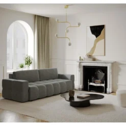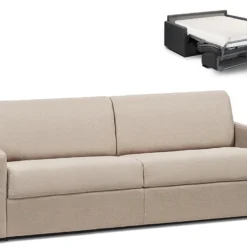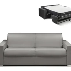 Canapé 4 Places Convertible Express En Tissu CALIFE – Gris Clair – Couchage 160 Cm – Matelas 18 Cm