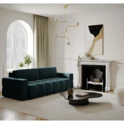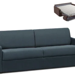 Canapé 4 Places Convertible Express En Tissu CALIFE – Bleu Foncé – Couchage 160 Cm – Matelas 22 Cm