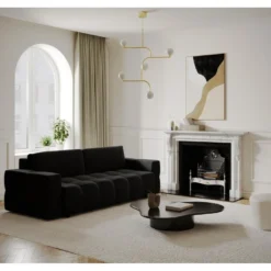 Canapé 4 Places Convertible Express En Simili CALIFE – Noir – Couchage 160 Cm – Matelas 14 Cm