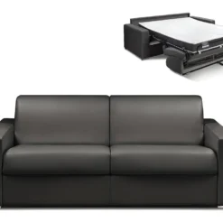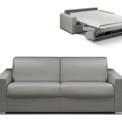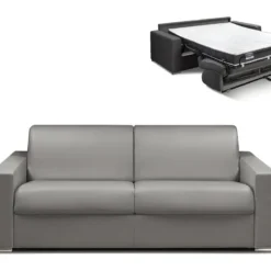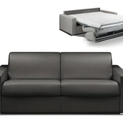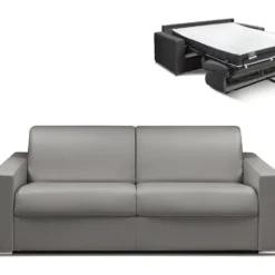 Canapé 4 Places Convertible Express En Simili CALITO – Gris – Couchage 160 Cm – Matelas 18 Cm