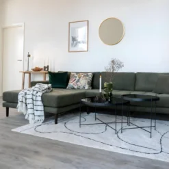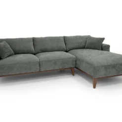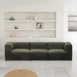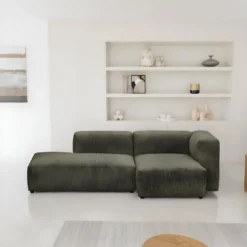 Canapé D’angle à Droite Modulable Avec Méridienne 3/4 Places En Velours Côtelé Vert Kaki – Modulo