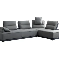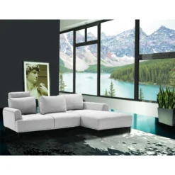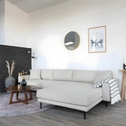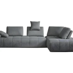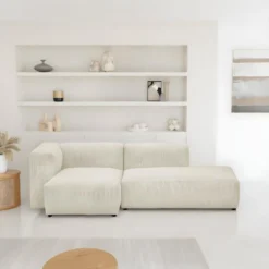 Canapé D’angle à Gauche Modulable Avec Méridienne 3/4 Places En Velours Côtelé Beige – Modulo