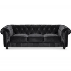 Canapé Chesterfield 3 Places – Couleurs – Velours Noir, Types De Canapé – 3 Places Chesterfield