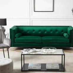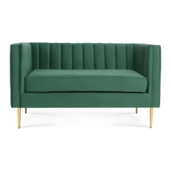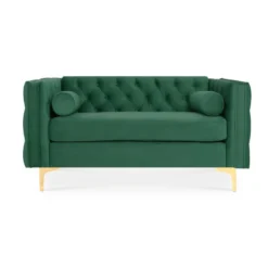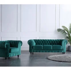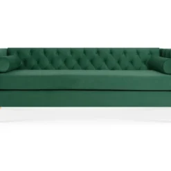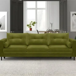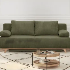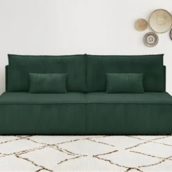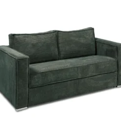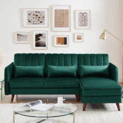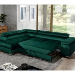 – Canapé D’angle Convertible – ERWAN – En Tissu Luxe 5 Places, Vert, Angle Gauche (vu De Face)
