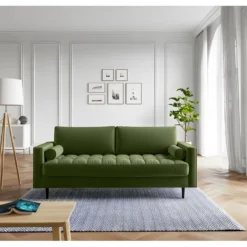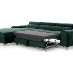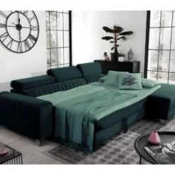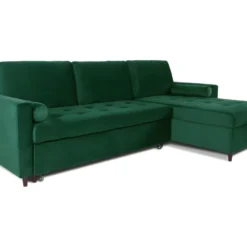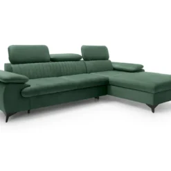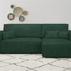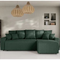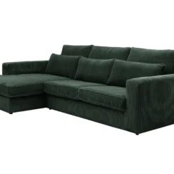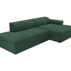 Canapé D’angle Réversible Et Convertible 4 Places Avec Coffre Isaac Velours Côtelé Vert Sapin