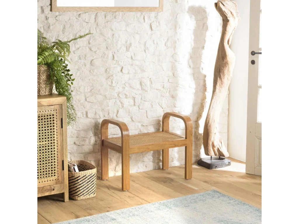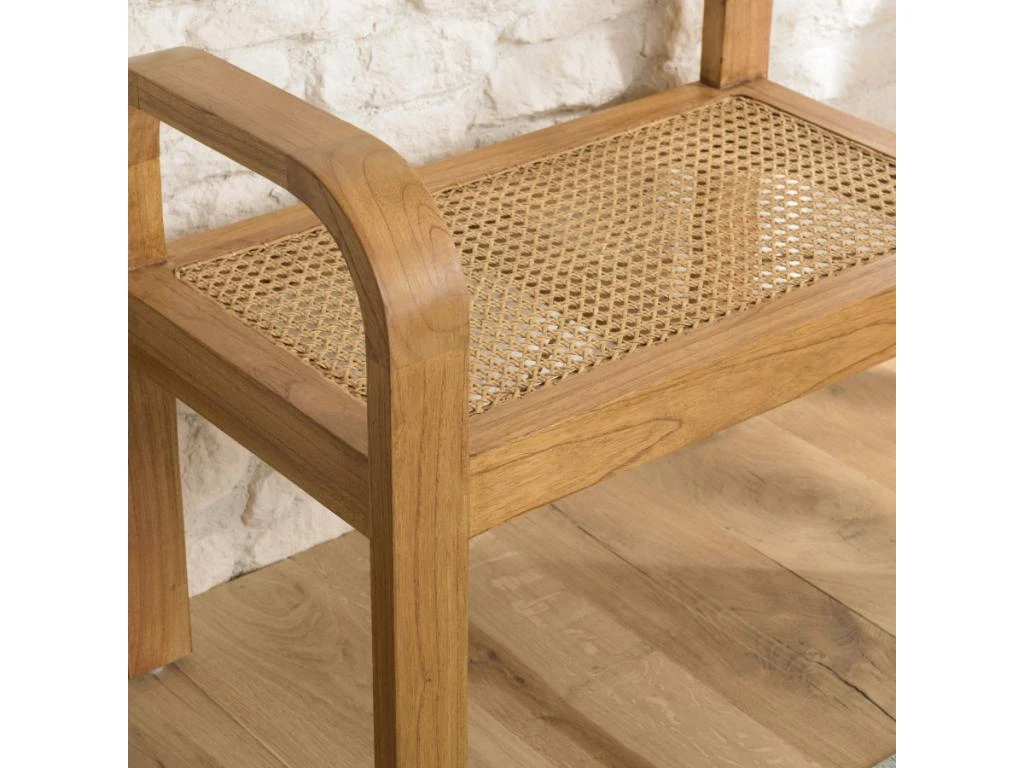 Tabouret 1 place bois de Mindi et rotin naturel. Dimensions : 67 x 38 x 54 cm. Article en Mindi/Rotin.