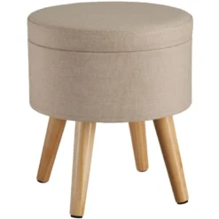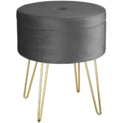 Tabouret Siège Pouf Avec Coffre De Rangement Table Basse Aspect Velours Gris 08_0000303