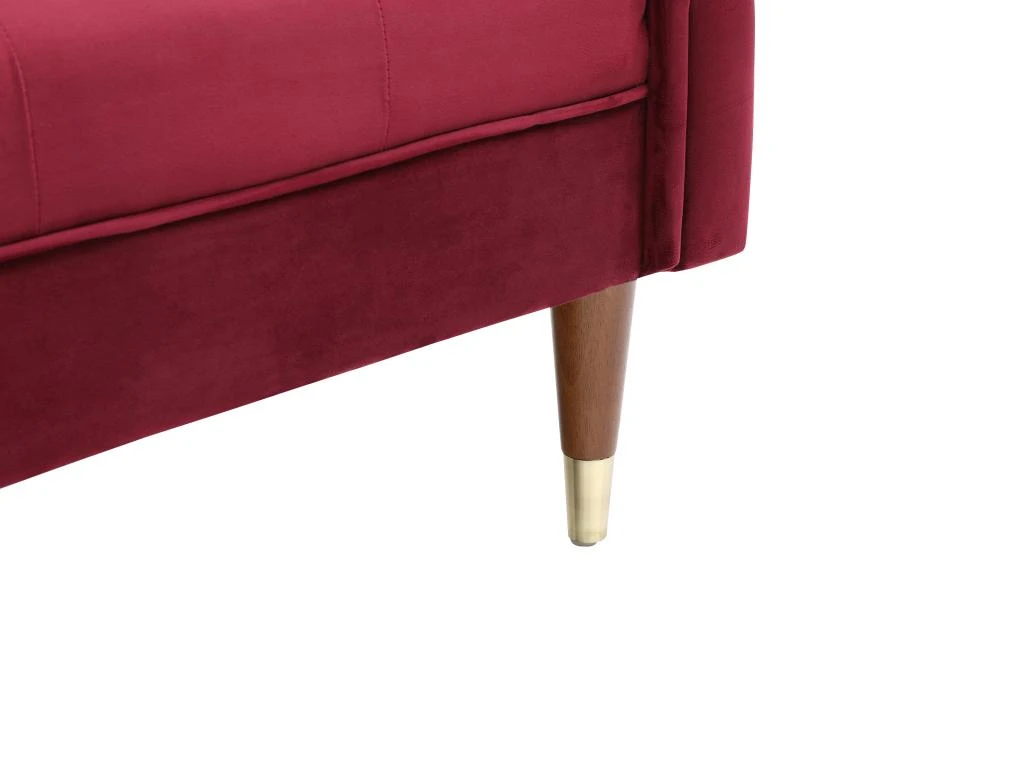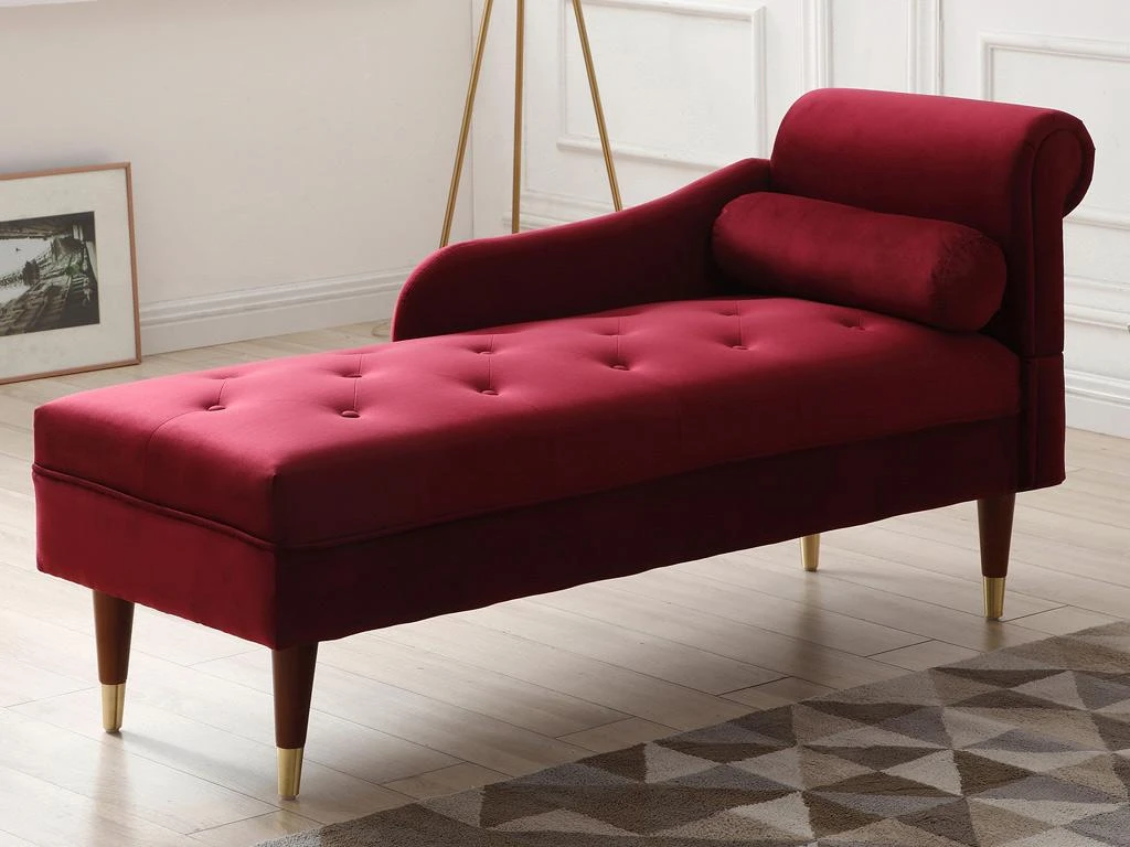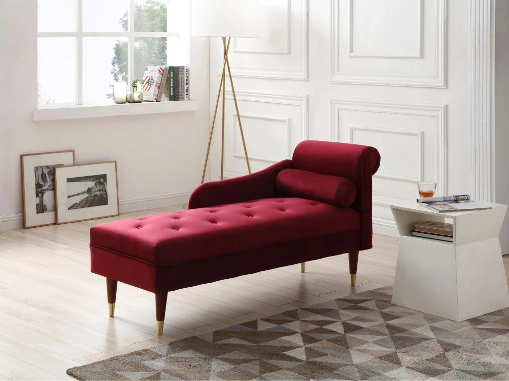 Vous êtes en quête d’un élément design, singulier et coloré ? Alors, laissez-vous séduire par la méridienne en velours UMARI ! Plongez dans le design art déco où le confort du velours rencontre des lignes aux formes arrondies. L’effet capitonné de l’assise assorti à un coussin décoratif et les pieds couleur bois et doré confèrent à ce meuble une élégance raffinée !