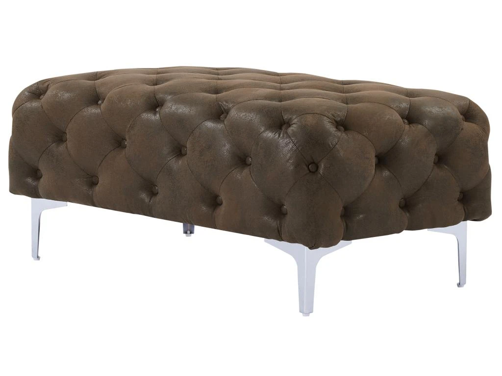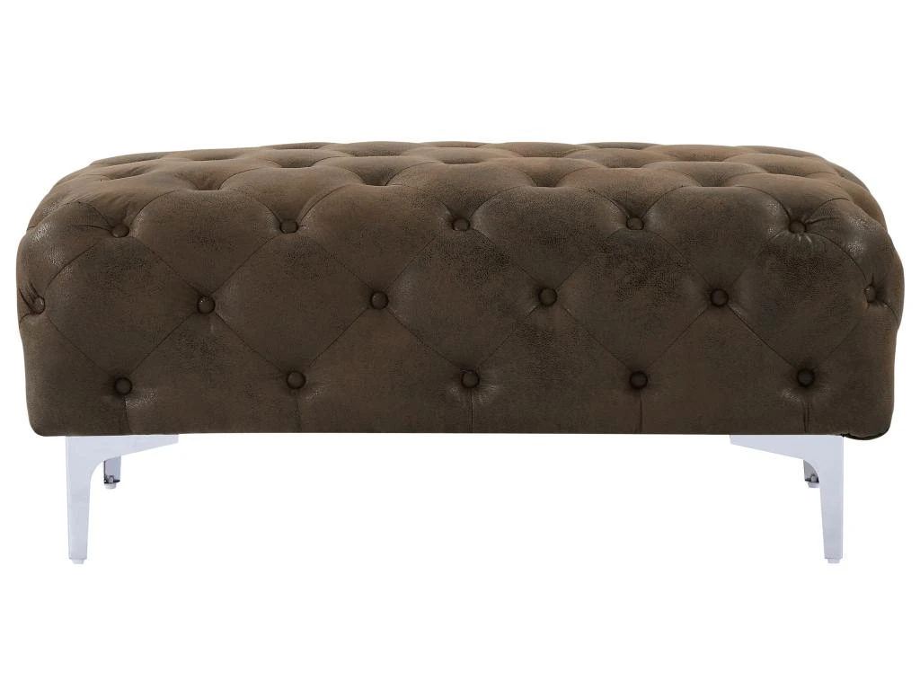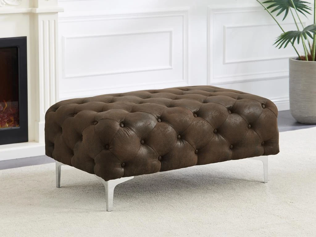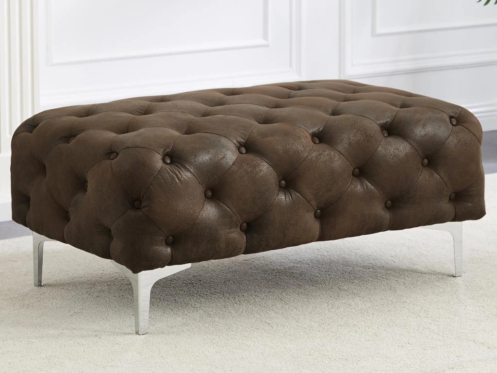 Vous avez envie d’un pouf au design mythique ? Choisissez le pouf Chesterfield EDWINA ! Avec son assise capitonnée, ce pouf est la pièce idéale pour votre espace de détente, offrant un confort douillet. Son aspect cuir vieilli ajoute une touche de sophistication vintage, tandis que ses pieds en métal donnent une impression de charme design. Aussi élégant que fonctionnel, vous pourrez utiliser ce pouf comme siège d’appoint ou repose-pieds.