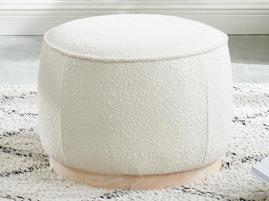 Le tissu bouclette donne un aspect texturé et reconfortant au pouf MILODEN. La douceur de ce tissu associée à une base en bois lui confère un style scandinave très branché.