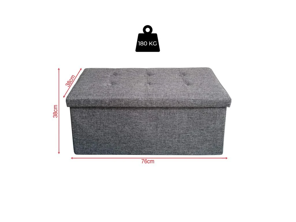 SPĂCIFICATIONS : Dimensions : H 38 x L 76 x P 38 cm – MatiĂšre : MDF, TNT, Polyester – Couleur : Gris – Poids maximum supportĂ© : 180 kg – CapacitĂ© de stockage interne : 95,9 litres – Housse amovible : non – Code RE6886