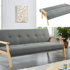 Canapé 3 Places Convertible Clic-clac En Tissu LALY – Gris