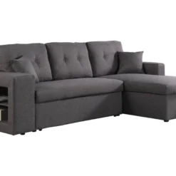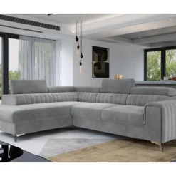 Canapé D’angle Droit Convertible Express En Tissu Gris Clair – Couchage 140 Cm – Matelas 18cm TORASI