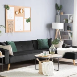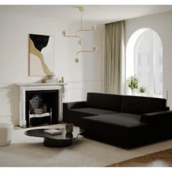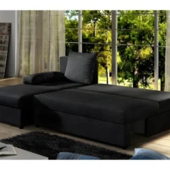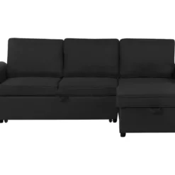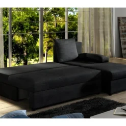 Canapé D’angle Convertible – GILO – En Tissu Luxe 3/4 Places, Noir, Angle Gauche (vu De Face)