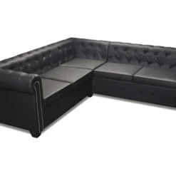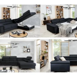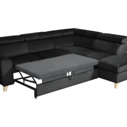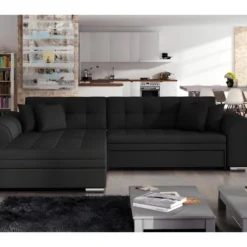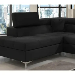 Canapé D’angle Convertible – ERNEST – En Tissu Luxe 5 Places, Noir, Angle Gauche (vu De Face)