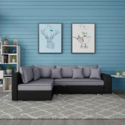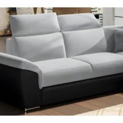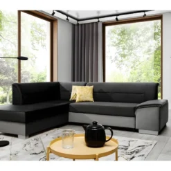 Canapé D’angle Convertible « Gregory » – 268 X 99/178 X 85 Cm – 4 Places – Gris/Noir – Angle Gauche