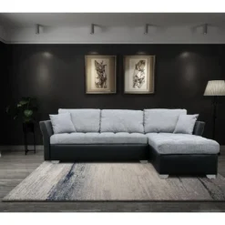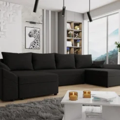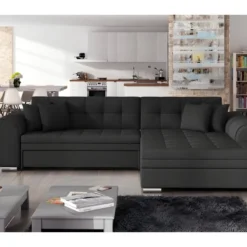 Canapé D’angle Convertible, SOHO, En Tissu De Qualité, Noir, 5/6 Places, Angle Droit (vu De Face)