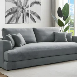 Canapé 4 Places Convertible Express En Tissu CALIFE – Gris Clair – Couchage 160 Cm – Matelas 18 Cm