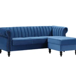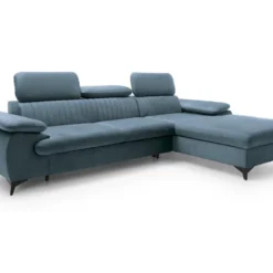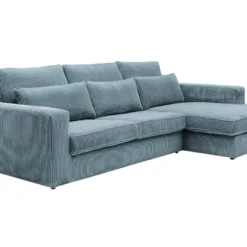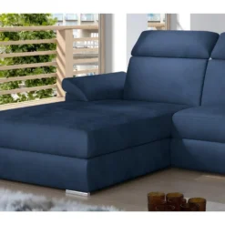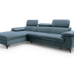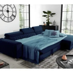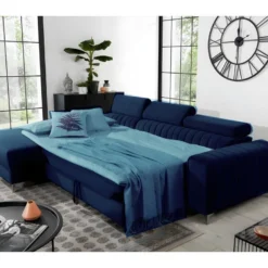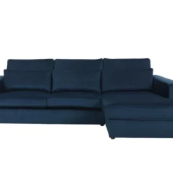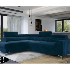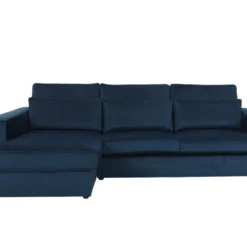 Canapé D’angle Convertible – LARRY VELOURS – En Tissu Luxe Bleu, 5 Places, Angle Gauche (vu De Face)