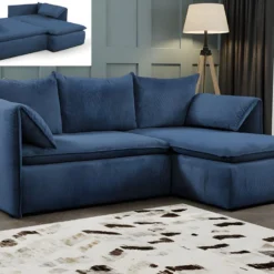 Canapé D’angle Convertible En Velours Côtelé Bleu Marine TEODORA De PASCAL MORABITO – Angle Droit