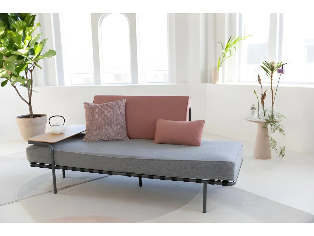Voici une superbe méridienne design de chez Zuiver avec pas moins de 3 fonctions en une. La méridienne Star est tout d’abord un « daybed » aux belles lignes horizontales où l’on peut volontier s’allonger durant la journée. Star est aussi un canapé grace à son confortable dossier et son coussin assorti. Et son troisième atout? Sa belle et pratique tablette intégrée en bois! Autre détail: vous pouvez disposer Star au milieu de la pièce car il est aussi beau de dos avec ses sangles en PVC.
