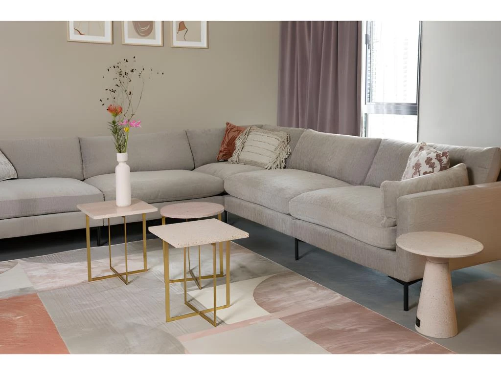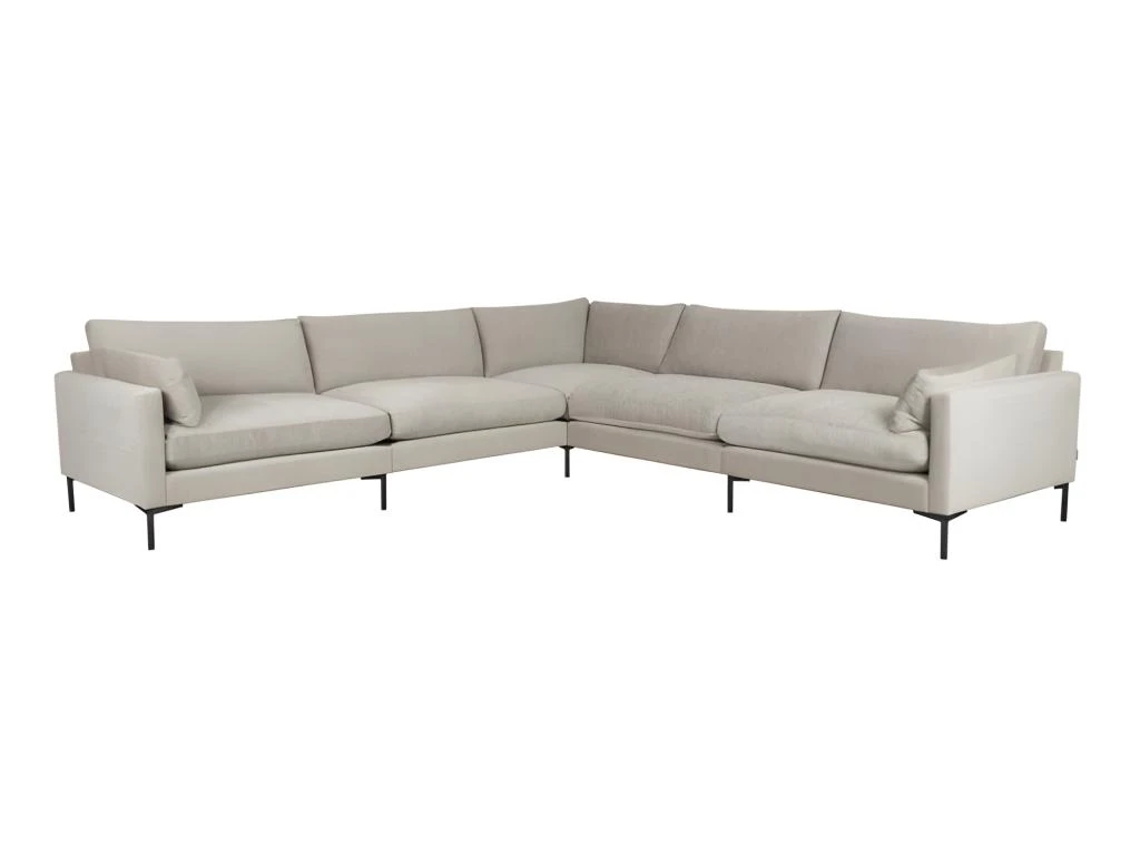 Grand Canapé d’angle confortable et design Summer de la marque Zuiver en tissu beige clair (latte), microfibres, doux au toucher.