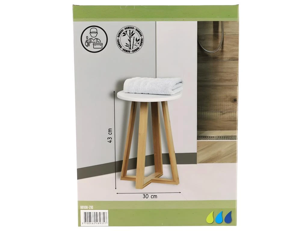 Tabouret de salle de bain en Bambou et Bois Blanc H 43 cm –