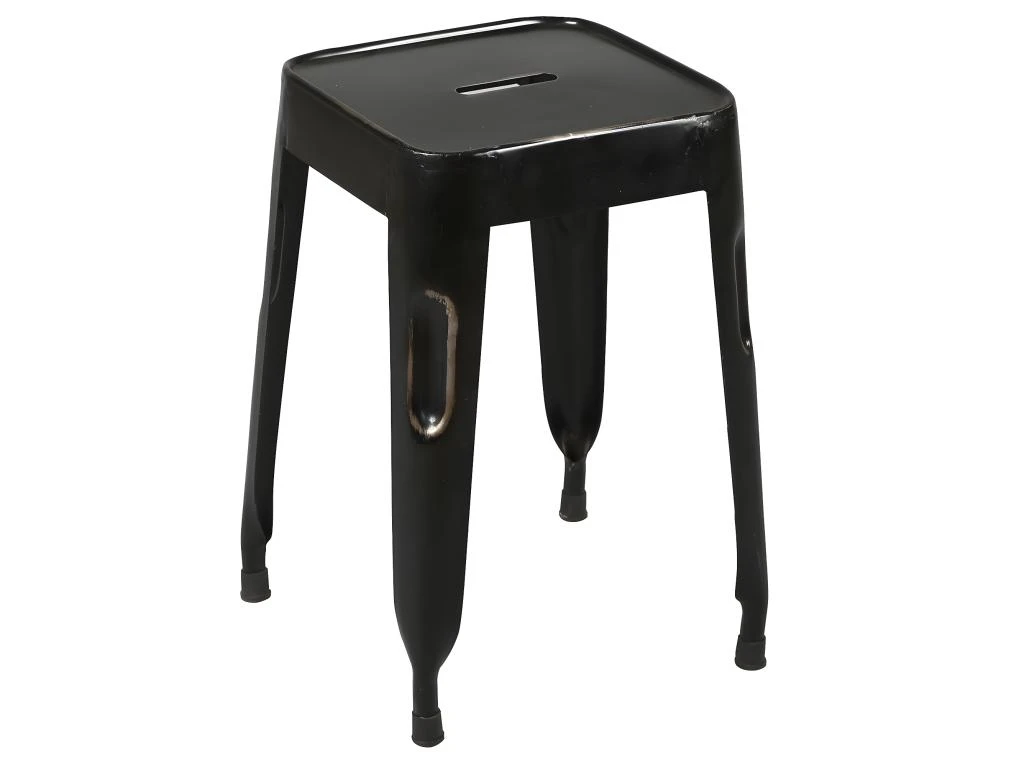 Lot de 2 Tabourets Noirs Tolga. Avec son design industriel très vintage, ce tabouret avec poignée intégrée sera parfait dans un salon ou une cuisine. Ce modèle est empilable pour éviter d’encombrer trop d’espace. Structure en acier, peinture noire, finition vernis nitro-cellulosique.