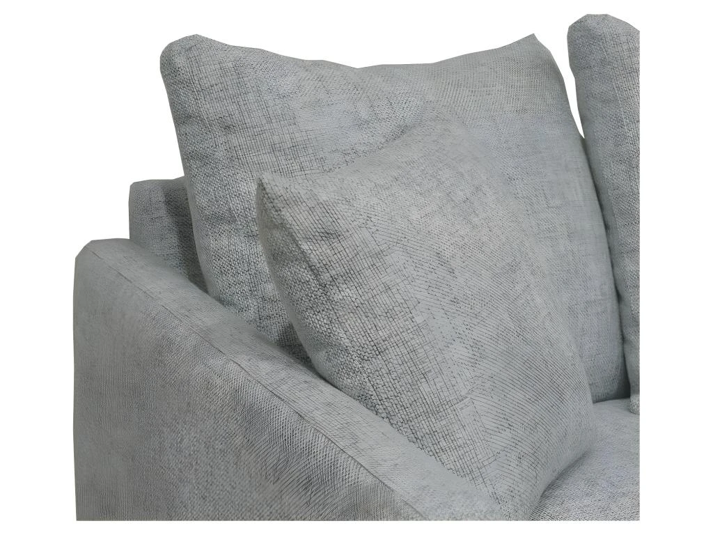 Le dossier et les accoudoirs du canapé en tissu Villabon sont constitués d’un mélange de fibres de polyester et flocons de mousse polyéther. Les coussins du dossier sont déhoussables par fermetures à glissière. Son assise se compose d’une mousse polyuréthane HR35, et d’une poche remplie d’un mélange de fibres Polyester, de flocons et recouvert d’ouate 160g/m². Ses coussins d’assise ont une finition simple surpiqûre et sont déhoussables par fermetures à glissière.