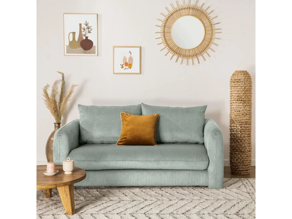 Love at first sight ! Le canapé convertible 2,5 places en velours côtelé Wiame a tout pour plaire. Son revêtement tendance aux allures vintage met en valeur ses lignes simples et modernes, pour un mélange des styles des plus réussis.
